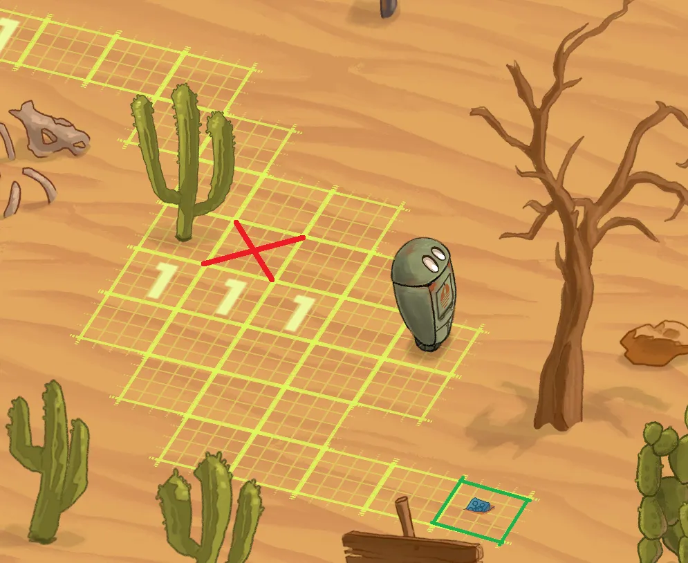 This is the low-spoiler guide for "Getting past the minefield" puzzle in Elroy and the Aliens. Unlike in normal walkthrough, you get gradual hints on how to solve the puzzle. Click the big button below to see your first hint. If the hint contains a spoiler, you will be warned about it before clicking.